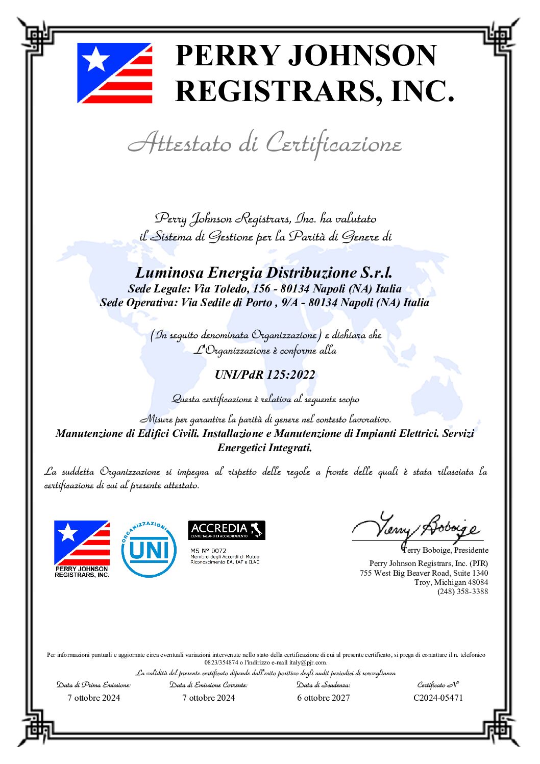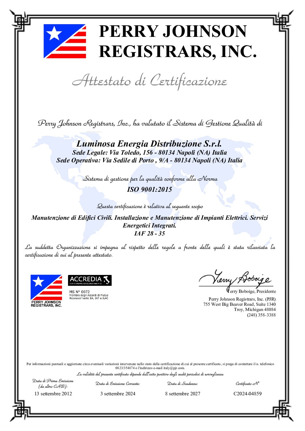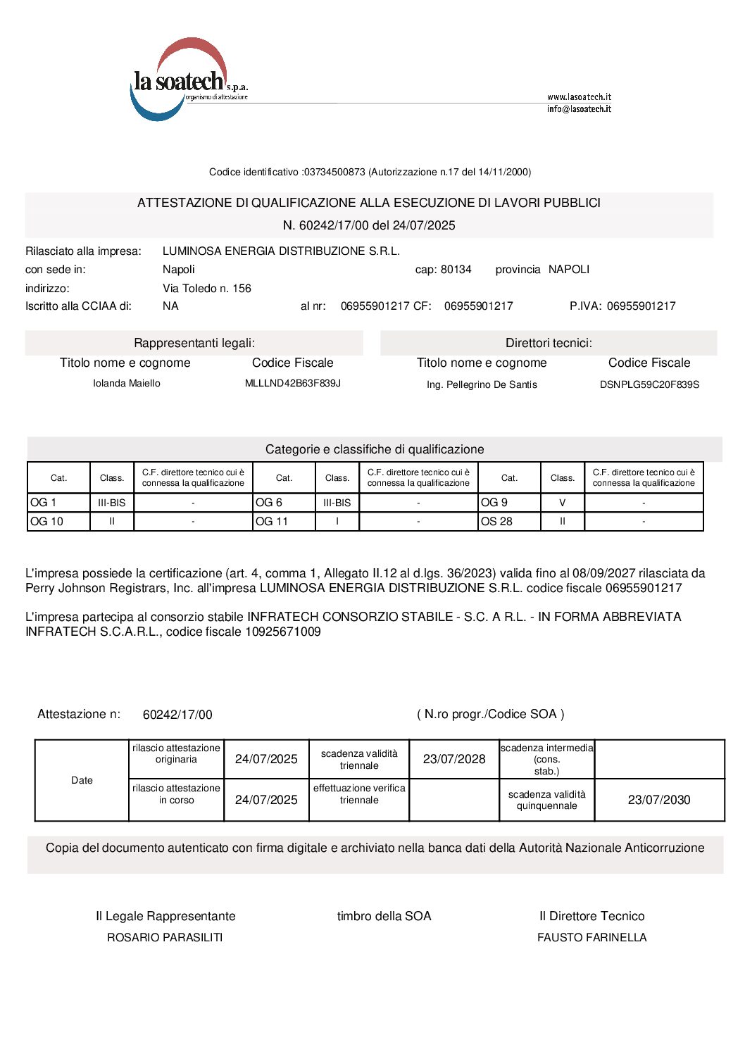 Amplia la sua offerta nel mondo delle rinnovabili e punta sul minieolico e sull’efficienza energetica. In questi settori confluiscono tutta l’esperienza ed il Know-how acquisiti nel fotovoltaico, nell’idroelettrico e negli impianti elettrici industriali. Matura quindi i requisiti che gli consentono di attestare l’azienda, tramite un organismo riconosciuto, acquisendo l’attestazione di qualificazione per l’esecuzione dei lavori pubblici SOA.