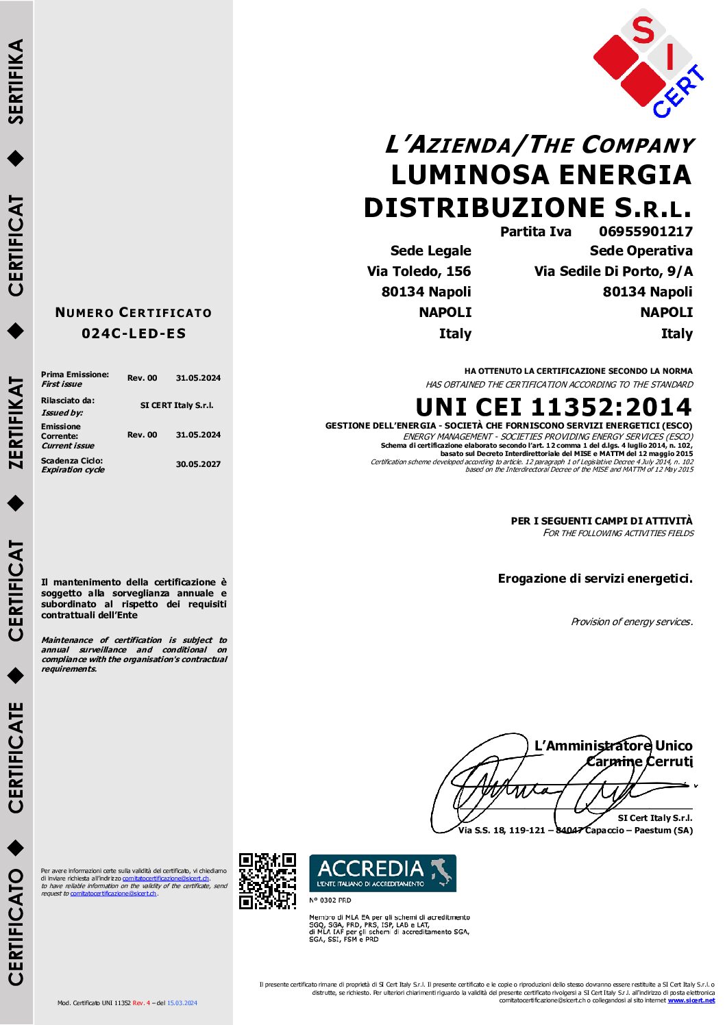La società recepisce l’orientamento nazionale e comunitario e amplia la propria conoscenza e specializzazione realizzando interventi che consentono l’uso razionale dell’energia.